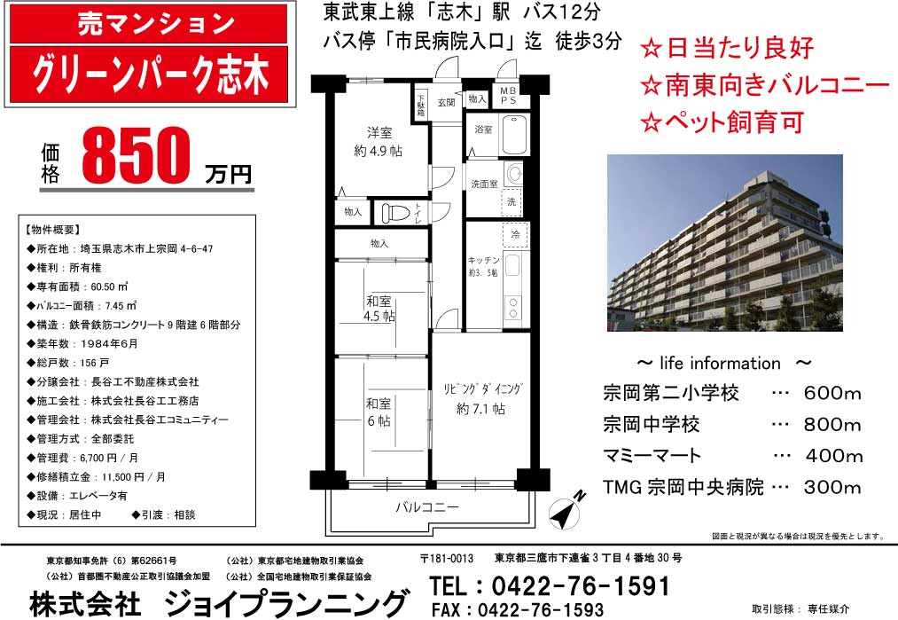 | 所在地 | 埼玉県志木市上宗岡4-6-47 | 総戸数 | 156戸 |
